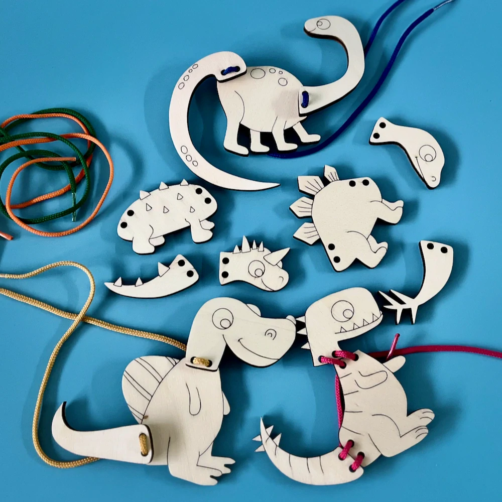 Tato sada provlékacích dinosaurů nabízí zábavnou a vzdělávací aktivitu, která podporuje rozvoj motoriky a tvořivosti dětí.
