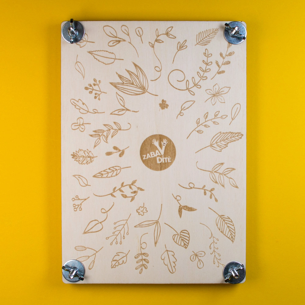 Materiál: topolová překližka o tl. 6 mm, poniklované šrouby s motýlkovými maticemi a podložky.