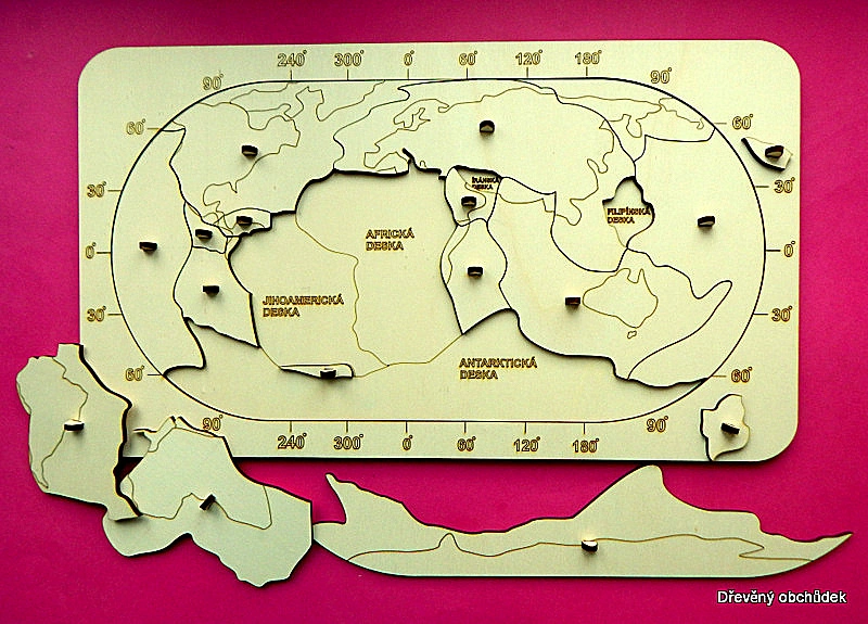 Dřevěná vkládačka znázorňující litosférické desky je ideální vzdělávací pomůckou pro děti i školní výuku zeměpisu. Pomáhá pochopit, jak je rozdělen zemský povrch a jak jednotlivé desky na sebe navazují. Díky názvům přímo na spodní desce se děti naučí rozlišovat desky jako Africká, Euroasijská, Jihoamerická, Antarktická, Filipínská a další.