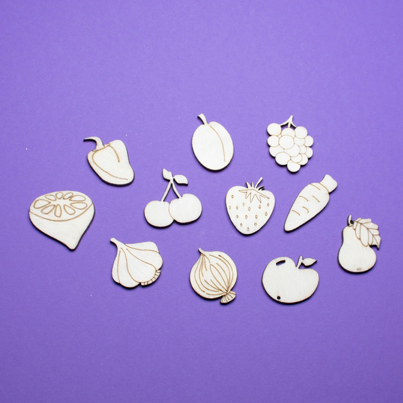 Ovoce a zelenina - tématická sada výřezů k dotváření a dekorování.