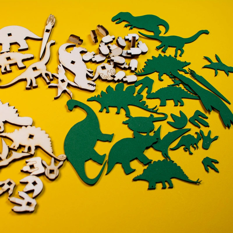 Sada výřezů z překližky a pěnovky zvané moosgummi pro dotvoření pěnových razítek