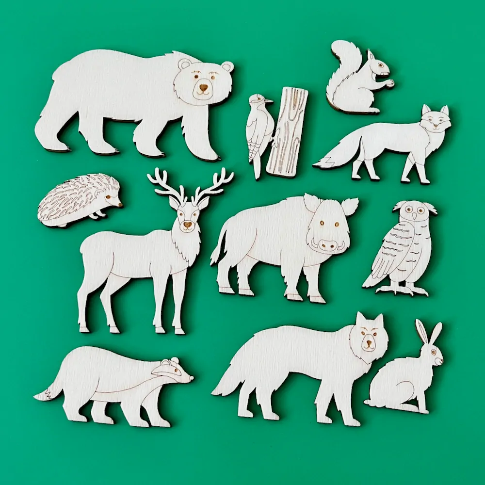 Sada výřezů s faunou z čekého lesa k dotváření a dekorování.