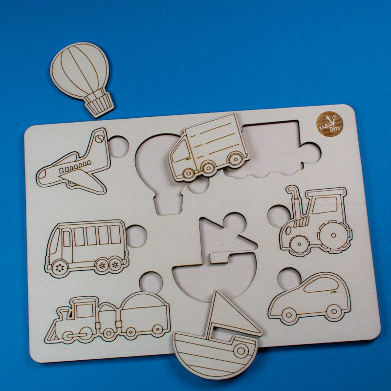 Vkládačka naučí děti rozpoznávat známé dopravní prostředky, procvičí jemnou motoriku a tvary.