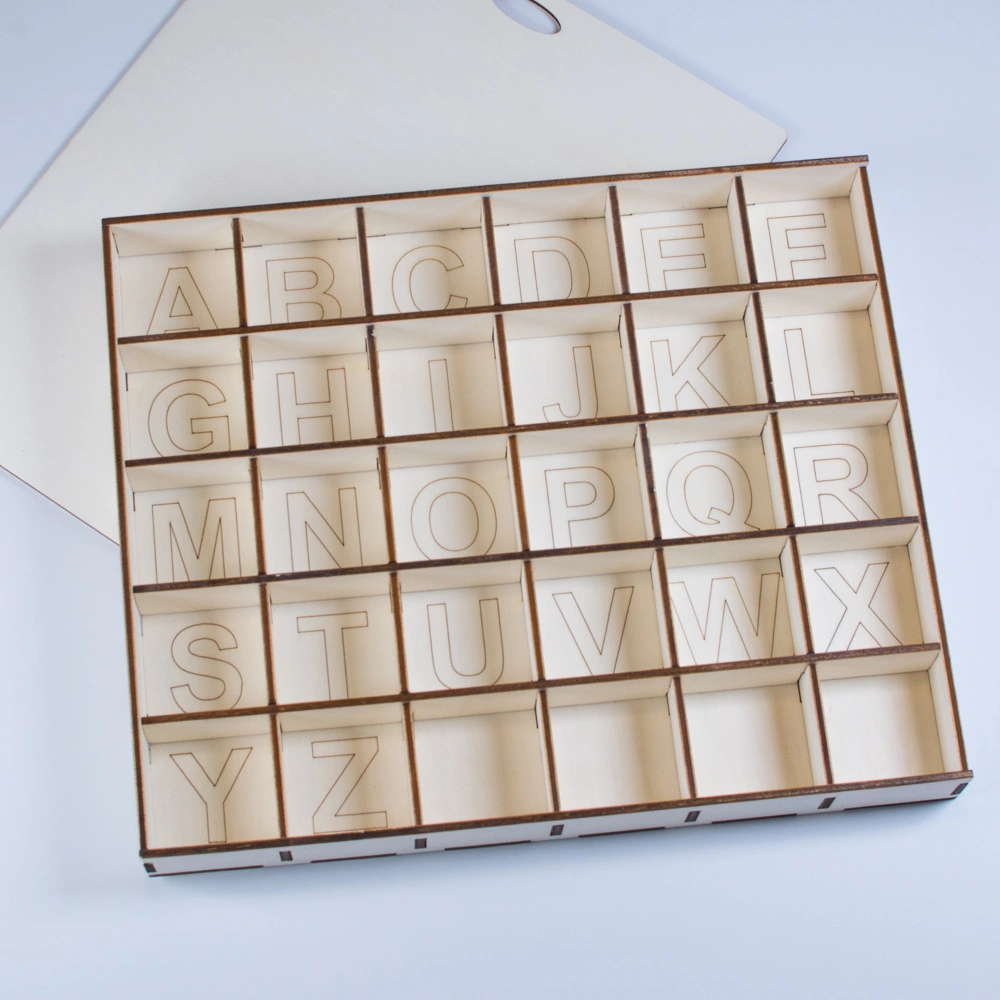 Krabici je možné pořídit ve variantě s víkem či bez víka, a také s gravírovaným dnem, kde jsou vykreslena jednotlivá písmena abecedy.