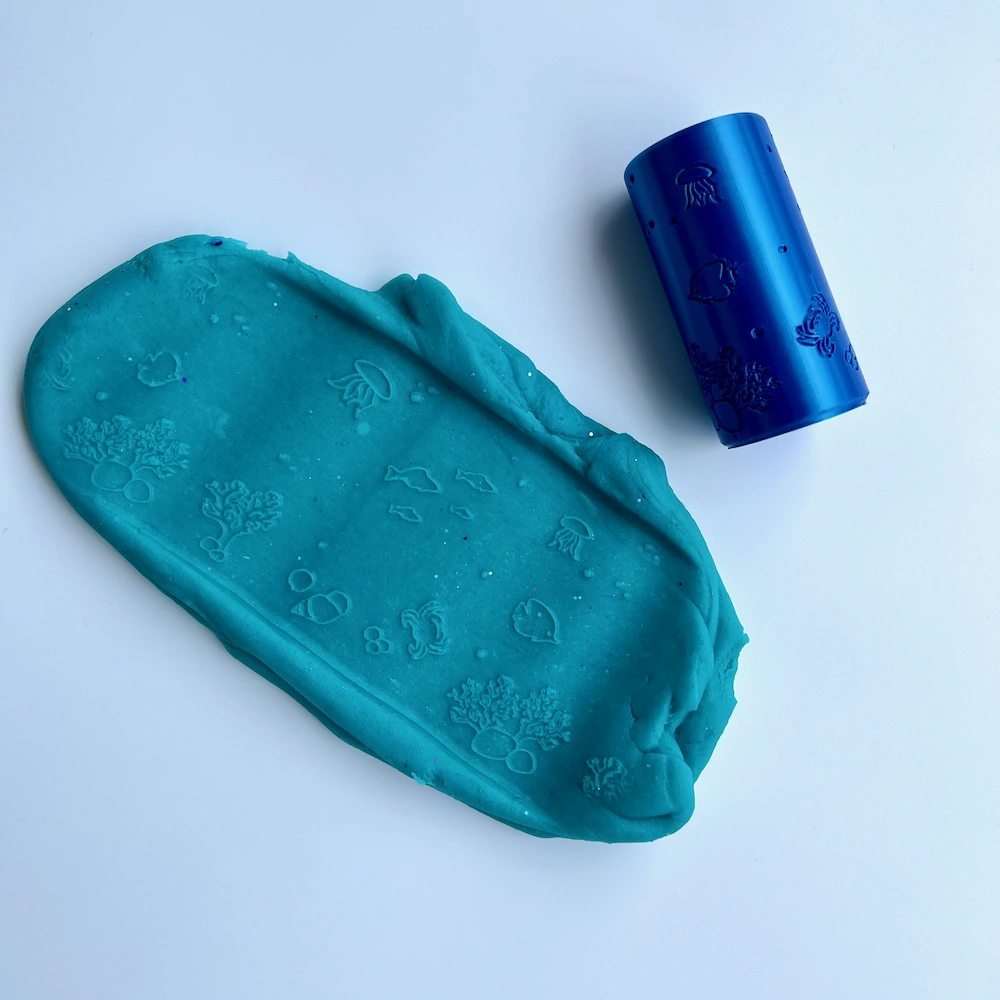 Obtiskávací válec do modelovacích hmot na téma moře.