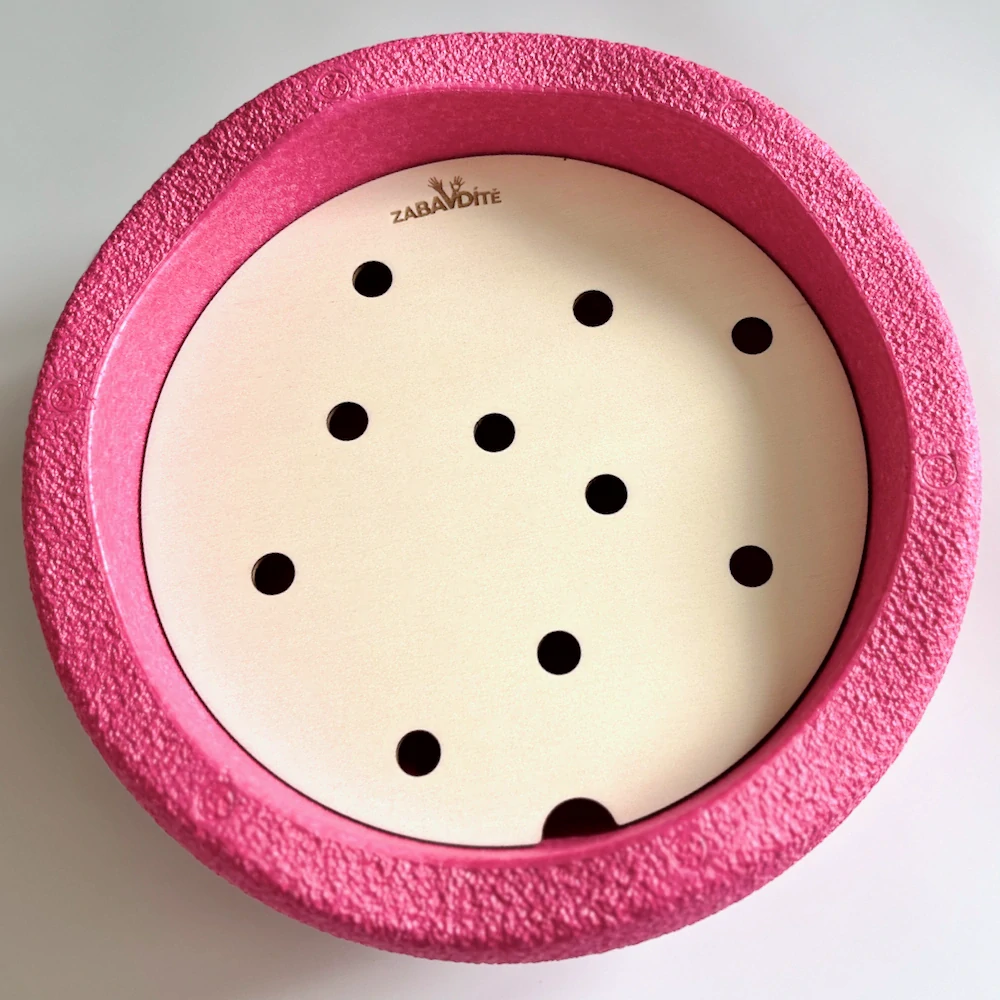 Tato dřevěná vkládací deska je navržena jako doplněk k balančním kamenům, kde rozšiřuje možnosti hry a cvičení jemné motoriky. Díky otvorům lze využít různé způsoby hraní, například provlékání, třídění či vkládání drobných předmětů. Otvory o průměru 12 mm umožňují také balanční hru s kuličkami – úkolem je jemným pohybem umístit všechny kuličky na své místo.