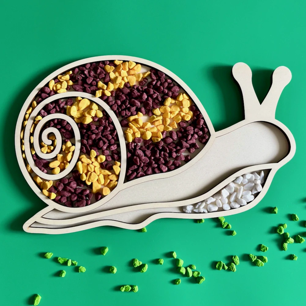 - Jemnou motoriku: Manipulace s drobnými předměty při jejich vkládání do jednotlivých částí šneka zlepšuje jemné motorické dovednosti a koordinaci rukou.