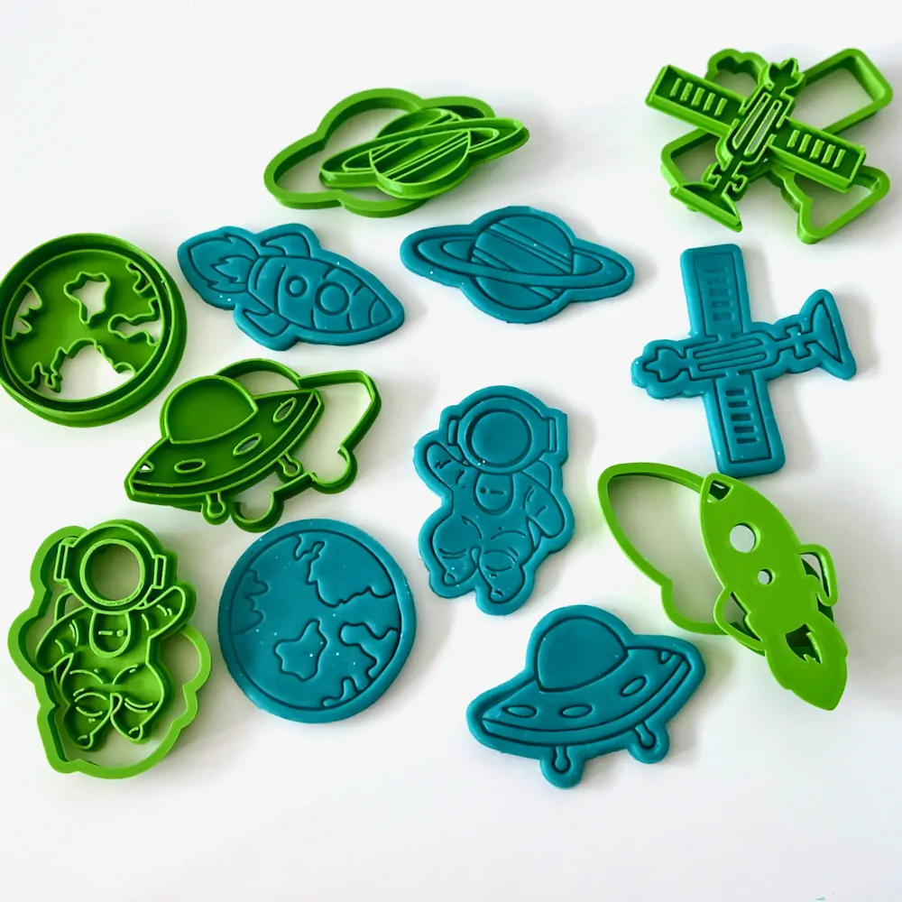 Sada vykrajovátek s motivy vesmíru je určena pro smyslové hraní (sensory play) a tvořivé aktivity. Děti mohou tvořit tvary inspirované vesmírem, což podporuje jejich kreativitu a rozvoj jemné motoriky. Vykrajovátka jsou vyrobená z PLA.
